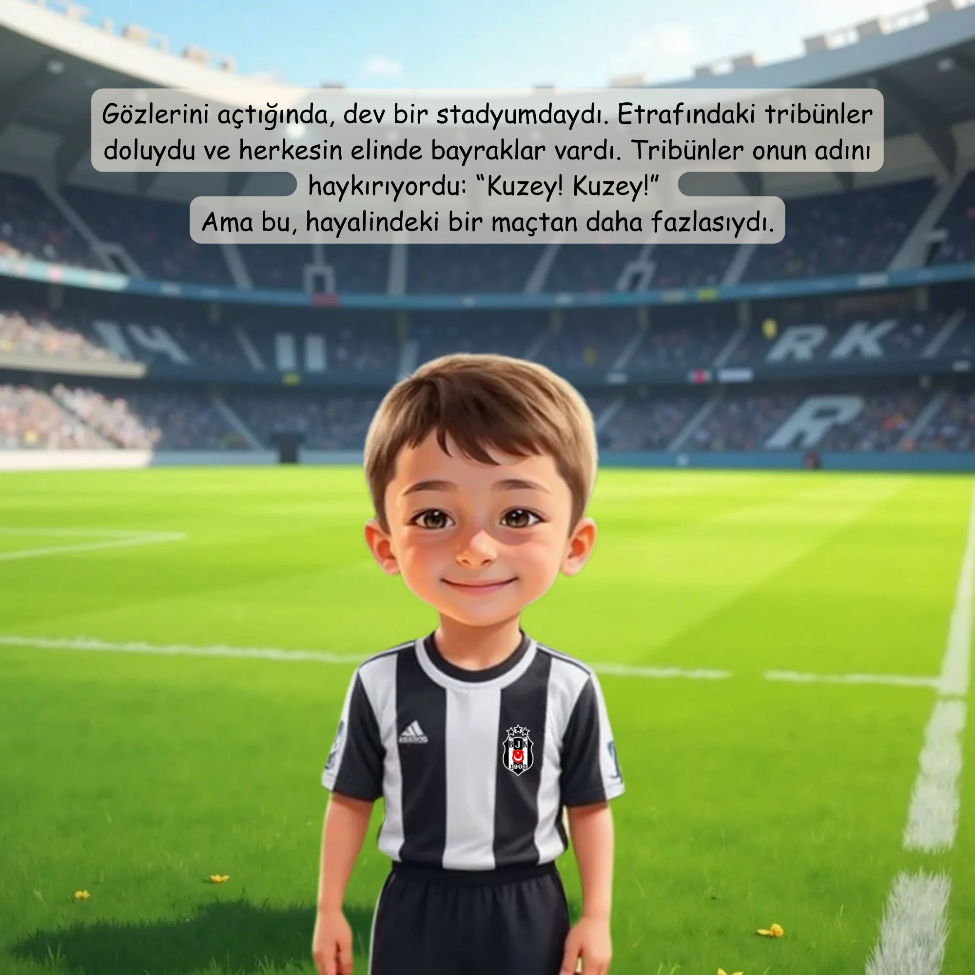 Çocuğunuzun adını taşıyan büyülü bir masal dünyasına adım atmaya hazır mısınız? Futbol masalı İsme özel masal kitabımız, tamamen çocuğunuza özel olarak yazılmış eşsiz hikayelerdir. Bu masallar, çocuğunuzun adını ve kişisel özelliklerini hikayenin içine dahil ederek, ona kendini özel ve kahraman gibi hissettirecek unutulmaz bir deneyim sunar.